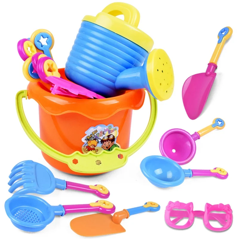 lower price 9pcs/Set Random Color Kids Sand Beach Toys Bucket Spade Shovel Rake Water Tools Set For Kids Toys G