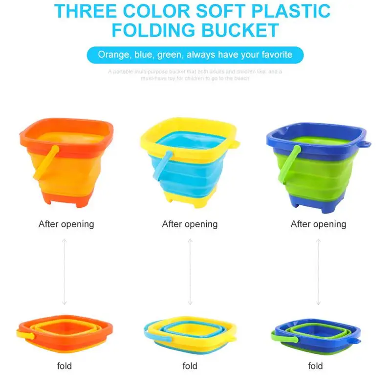 Best Beach Bucket Sand Toy For Kids Foldable Beach Pail Silicone Collapsible Buckets Playing Portable Pa