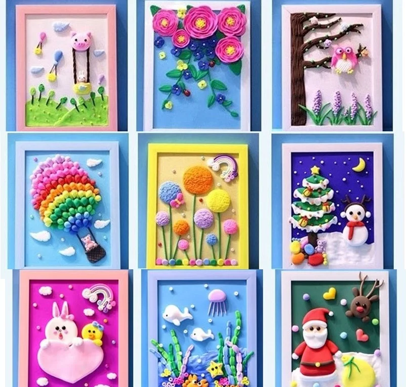 Promo Children DIY Modeling Clay Craft Toy Kids Color Clay Handmade Frame 3D Puzzle Animals Flowers Ballo