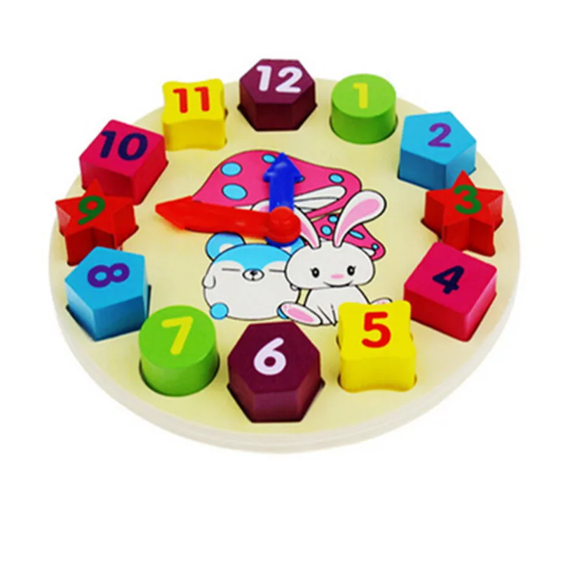 low cost Montessori Educational Wooden toy 3D Rabbit Clock Wooden Sensory Mathematics Jigsaw Brain Training